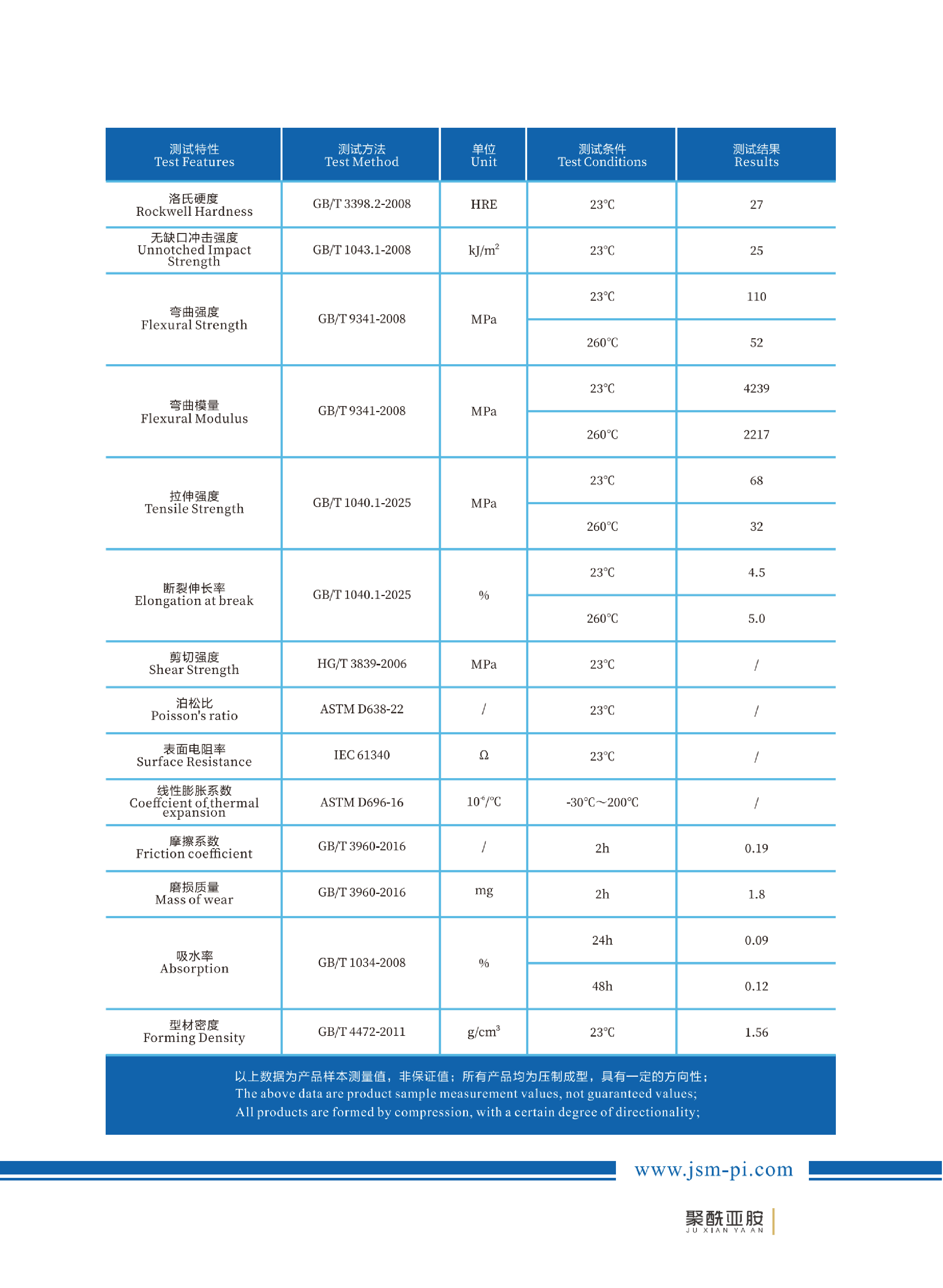 产品介绍A-PI-211是一款耐磨改性聚酰亚胺树脂,具有优异低摩擦系数、低磨耗、自润滑等特性。产品用途用于制造旋转动态密封垫片、静态密封底座、无油轴套等零部件;产品广泛应用于石油工业、汽车工业、精密仪器等领域。